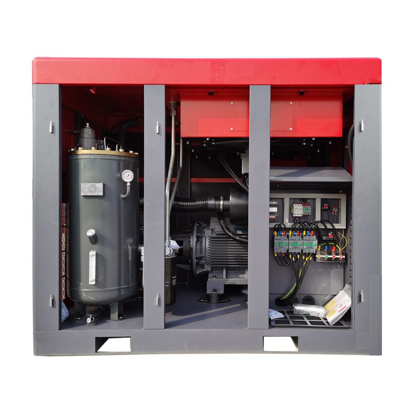 (1). Adopts the international top-level third-generation asymmetric wire twin-screw air end, adheres to the exquisite manufacturing process, adopts the peak high efficiency low-pressure, high-efficiency tooth shape and the axial air inlet design.